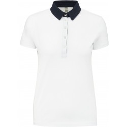 Col en bord-côte. Patte de boutonnage 3 boutons. Bande de propreté contrastée encolure et fentes côtés. Passepoil contrasté épaules.