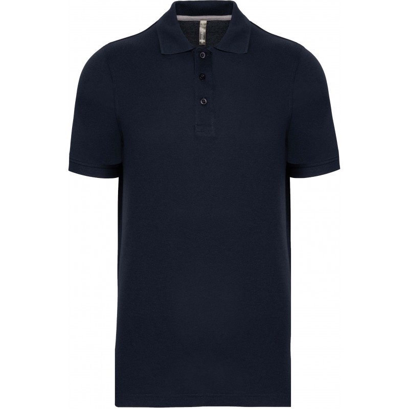 Patte 3 boutons ton sur ton. Col en bord-côte avec bande de propreté contrastée. Finition bord-côte bas de manches. Fentes latérales avec bande contrastée pour plus de confort. Finition double aiguille bas de vêtement.