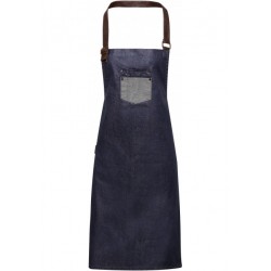 Tablier à bavette au style vintage avec empiècements en tissu contrasté et détails en similicuir pour une apparence à la fois authentique et tendance, prisée dans bon nombre d'établissements.