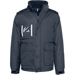 Manches amovibles. 5 poches fonctionnelles devant dont une à badge transparente. 1 poche intérieure.