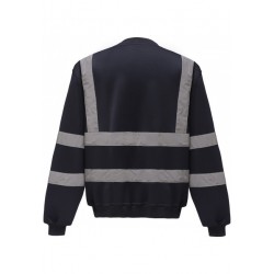 Taille, col et poignets en bord côte. Deux bandes réfléchissantes de 5 cm de large autour du corps et des bras et une sur chaque épaule. Finitions double aiguille.